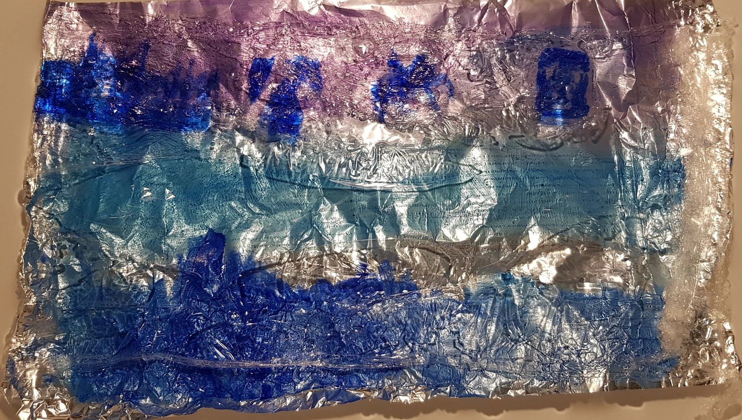 It was around about this time the foil paper stuck out to me, I began to think about how this would provide a perfect foreshadowing to the sketches of cling film. I thought about just having the sketches on foil paper and decided against it as the floating, threatening motion of the plastic in water differed from any other material I had found.