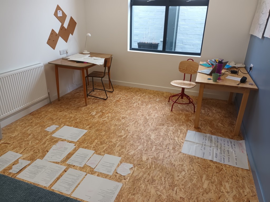 It was a treat to be able to lock the door at the end of week 1, leaving things exactly where they were. When I entered the space again the following week, it felt like I had pressed pause inside my brain and hit play again on return. Walking around the space, reading my notes, felt like walking around the inside of my brain, as I had left it the previous Friday. This meant it didn’t take long to get back into the swing of things. Very helpful.