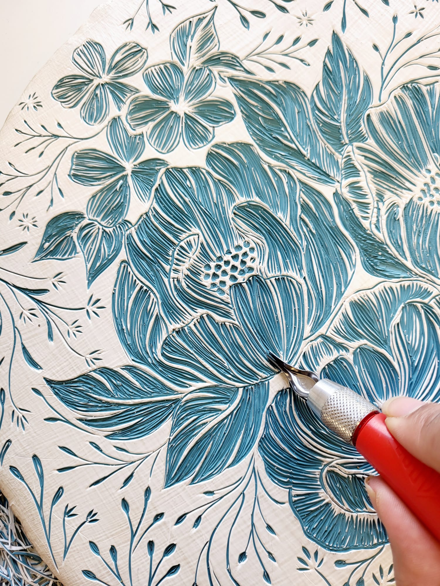 It took 45 layers of paint before the boards were ready to carve, and on my first day of carving realised I’d missed the shared lunch break hour (at The Nest all are encouraged to eat lunch together). I was lost on the process and really enjoying it. I then set alarms for regular breaks and stretching, I learnt some valuable tips from the other residents there such as block working and how to utilise the workspace for different work tasks.
