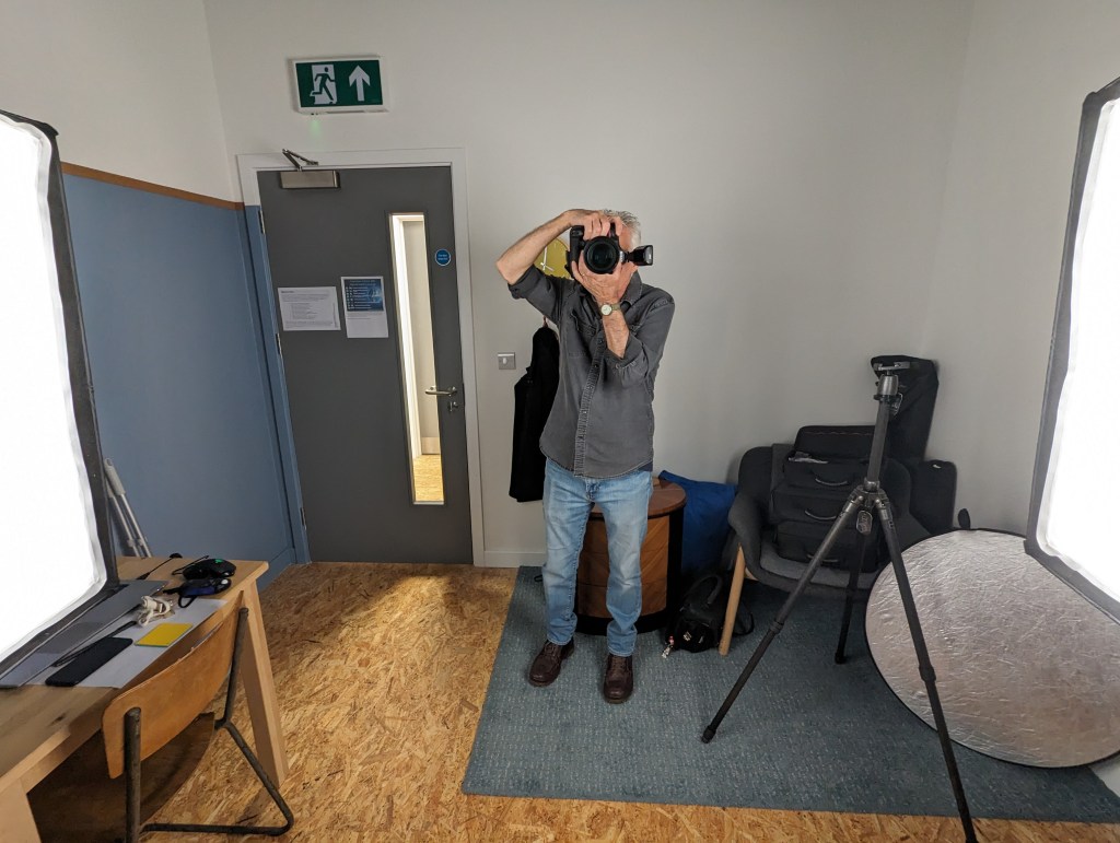 I set up my photographic studio at the Nest and started to take test shots, test the light of the room and the setting of the equipment required. It is important to understand the environment in which the photographs are to be taken so to be able to capture the portraits efficiently, so that the participants do not have to wait long before and during the shoots. I have selected a black backdrop to help better defined colours and shapes; this will also provide the effect of light coming from the darkness.