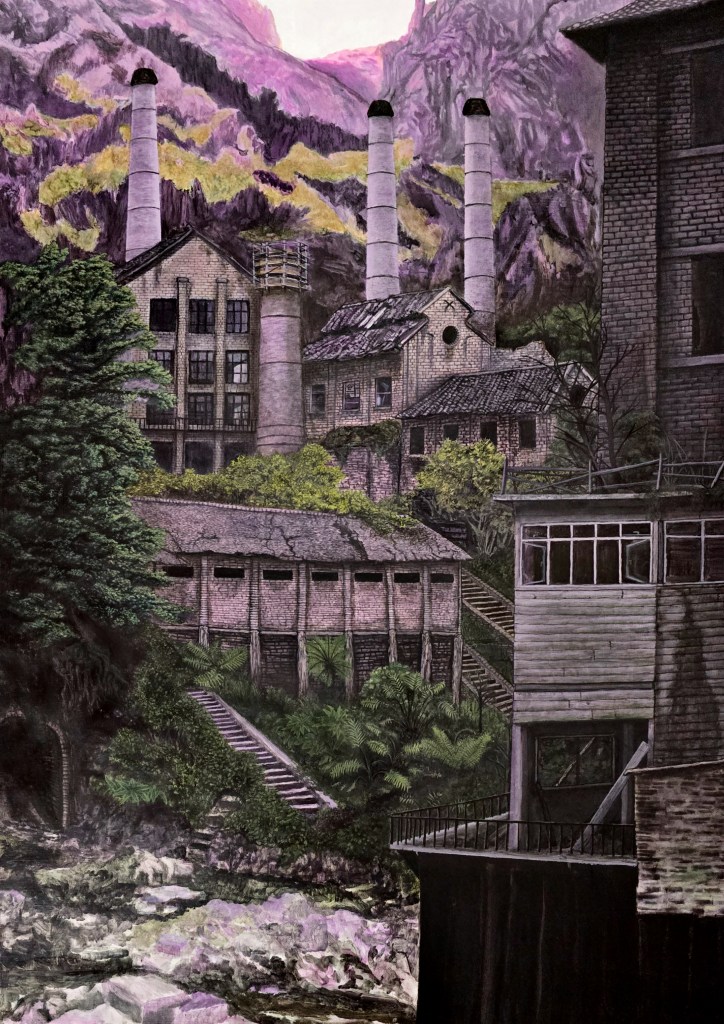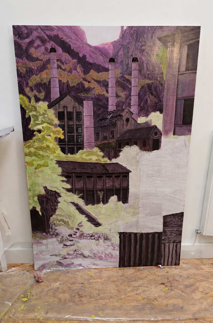 I had my starting point. It’s a short residency so day one was mostly researching and a little sketching. I came across footage of the Danzhai Mercury and Gold Mine in Danzhai County, Guizhou Province, China. I knew almost immediately that this would be the foundation for my painting, but not an exercise in realism.
