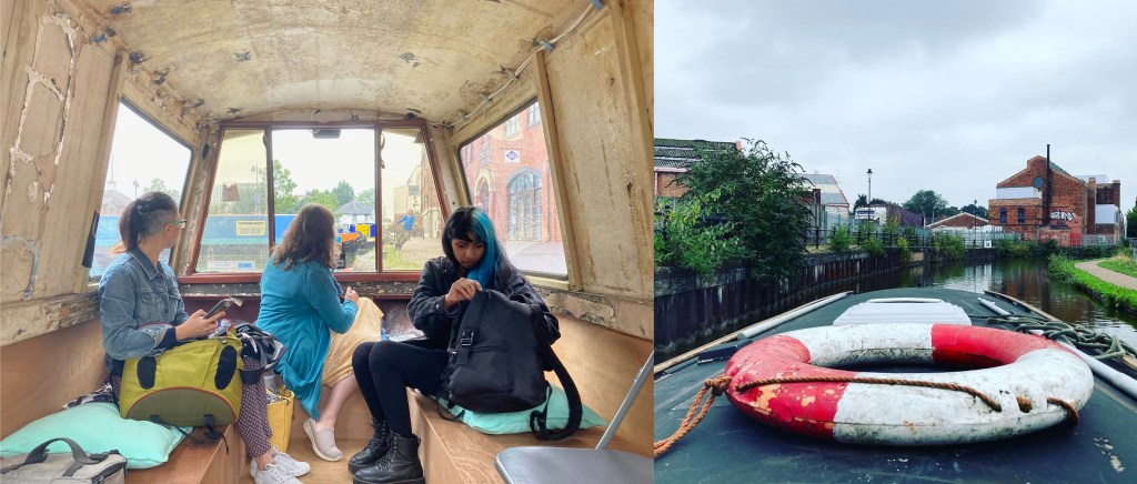 It takes a few minutes to get used to the motions of the boat, the sensation of buoyancy is something I’ve not felt in years. The last time I was on a boat was in Orissa, December 2017, Chilika lake, looking at gangetic dolphins. Being on the canal felt like Coventry’s secret mirror world, where everything moves in slow motion, watching the flora of the banks drift by, and the soft motions of the water felt surreal and healing.